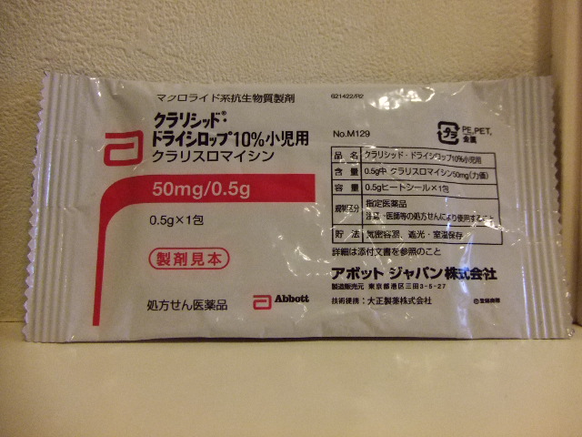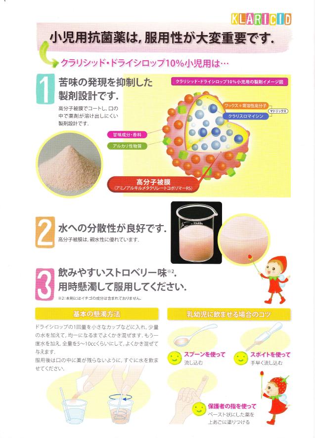 クラリス/クラリシッドドライシロップ10%小児用が美味しくなるということで、ご案内をいただきました。前回の変更が2006年6月ですので、約3年ぶりの変更ということになります。