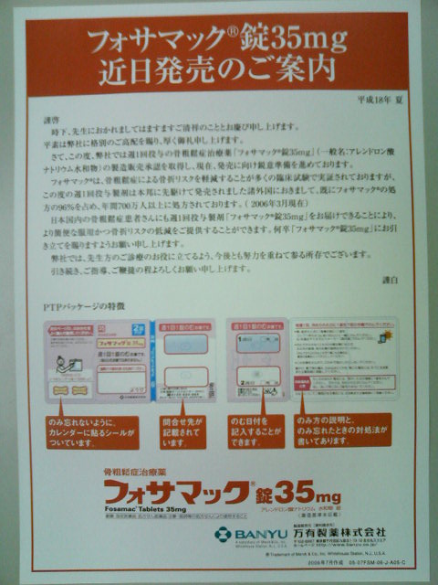 従来のフォサマック錠は5mg/錠でしたので、35mgだと7錠分=1週間分ですね。