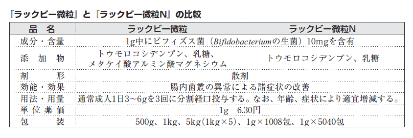 余談ですが、ラックビー微粒は添加剤を加えることで、(個人差はあるでしょうが)旧ラックビーに比べて口当たりが良く服用できた製剤でした。薬剤師サイドとしても流動性が良く扱い易いという利点がありました。
