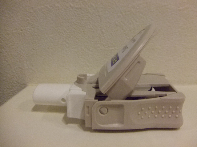 ふたを戻したところ。この状態から吸入を行います。吸入したという感覚があまりないため、心配であれば2-3回吸入の動作を行ってもよいと思われます。