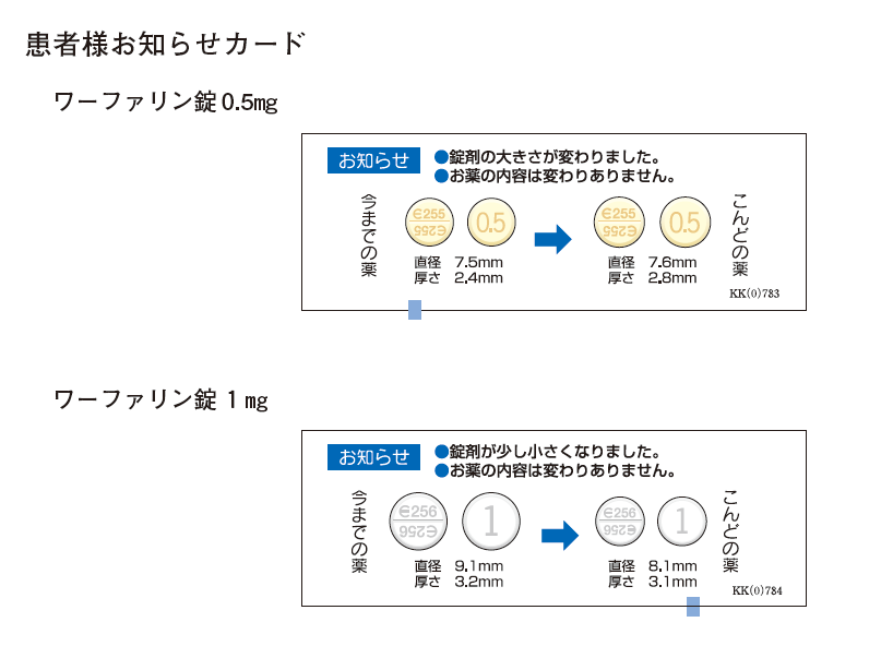 エーザイ:【錠剤サイズ・包装変更】ワーファリン錠0.5mg・ワーファリン錠1mgの錠剤サイズおよび包装を変更いたします。(pdfファイル)