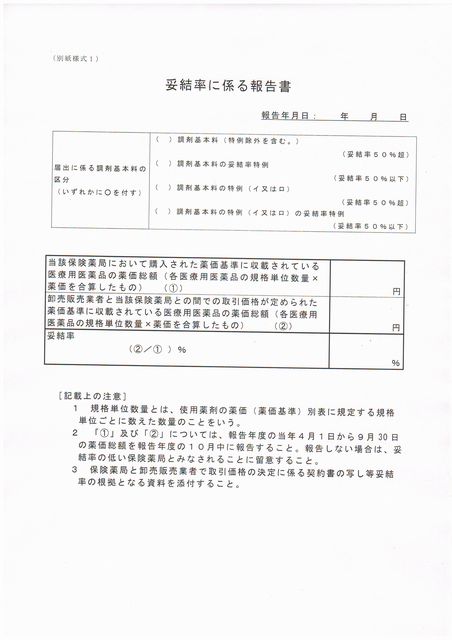 薬局側が押印する欄には、開設者印だけではダメで、薬局の名称と管理者の氏名を入れてくださいと言われました。妥結率の報告は、保険医療機関等ごとに行うものであるから、でしょうか。