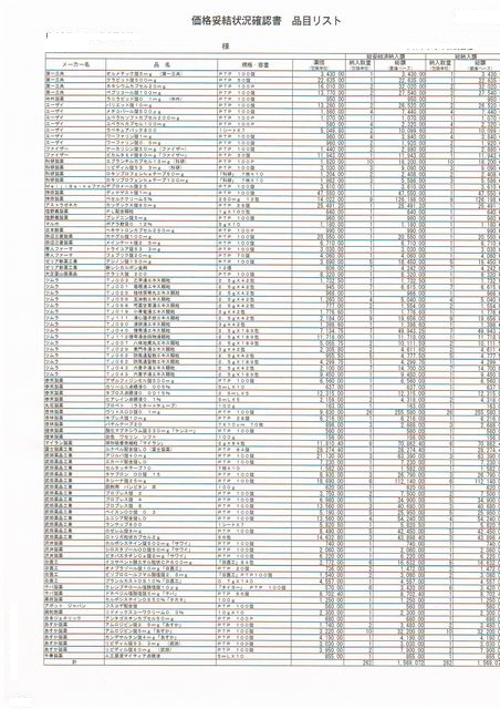 10月に入って、各卸から「価格妥結状況確認書」が品目リストとともに提示されました(ここに掲載している画像の金額と記名押印欄は、全て抜いてあります)。