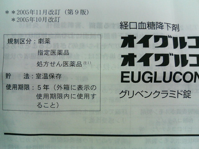 オイグルコン錠の添付文書(一部)