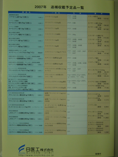 本日7月6日、後発医薬品の追補収載がありました。合計420品目だそうです。