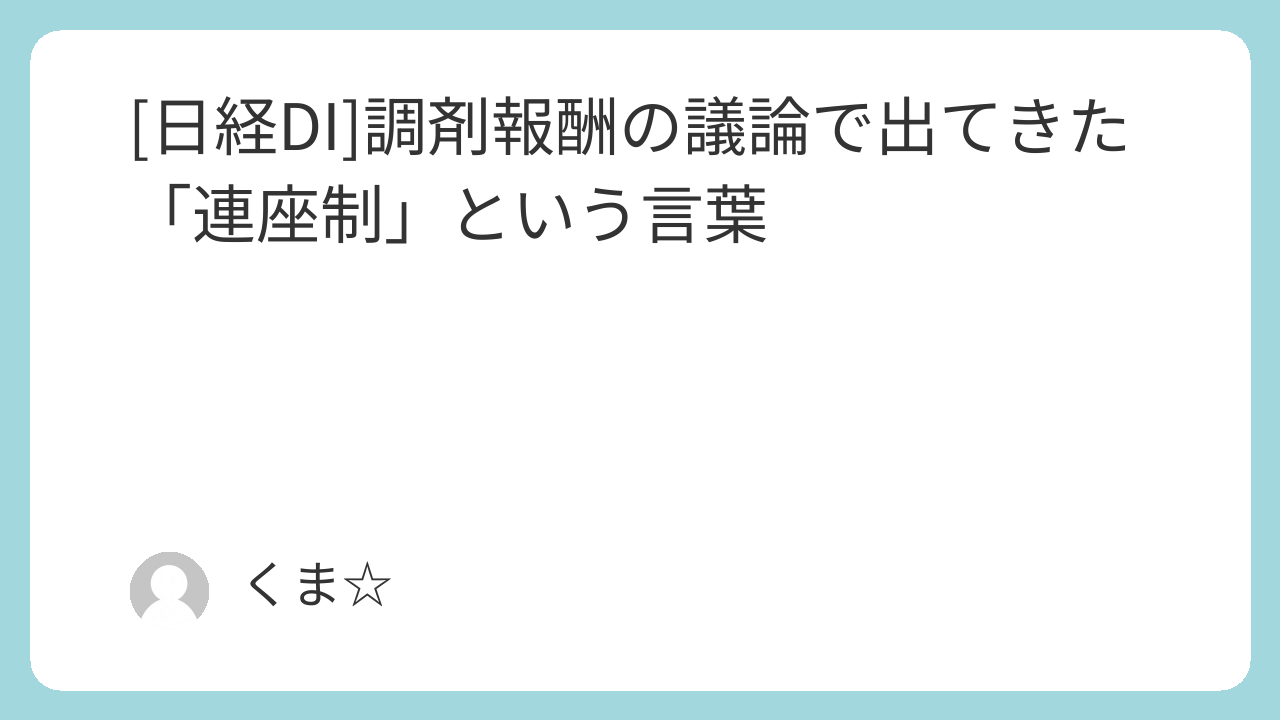 熊谷信の「薬剤師的にどうでしょう」:調剤報酬の議論で出てきた「連座制」という言葉