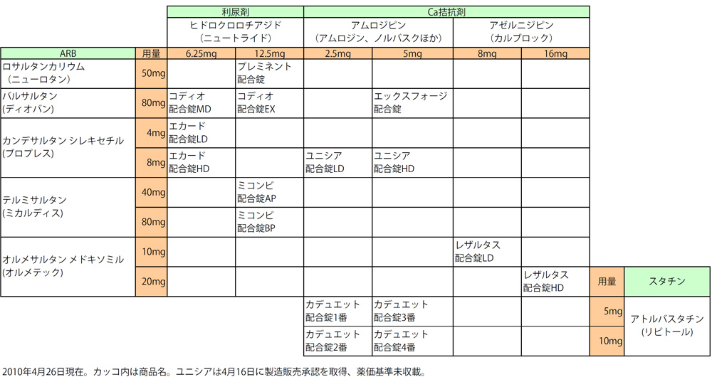 アルファベットの統一は必要かもしれませんね。それから2規格のみのもので、レザルタスみたいに配合されている2剤の規格が変わるのも避けた方がいいような気がしますが、じゃあカデュエットはどうなんだと言われると…