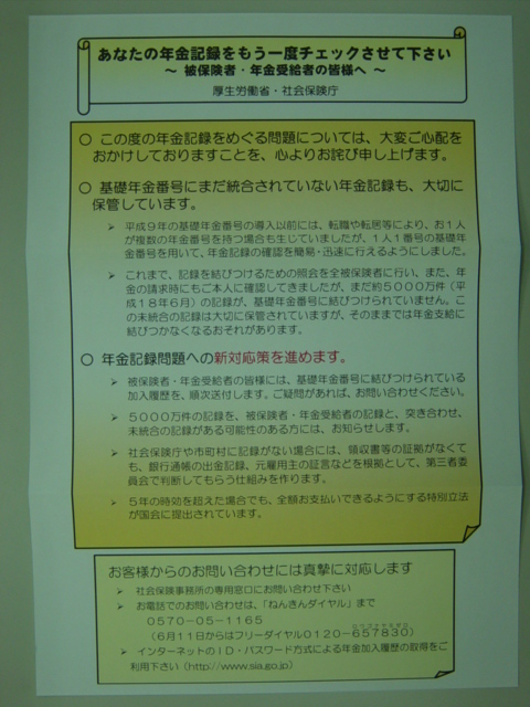 「あなたの年金記録をもう一度チェックさせて下さい」