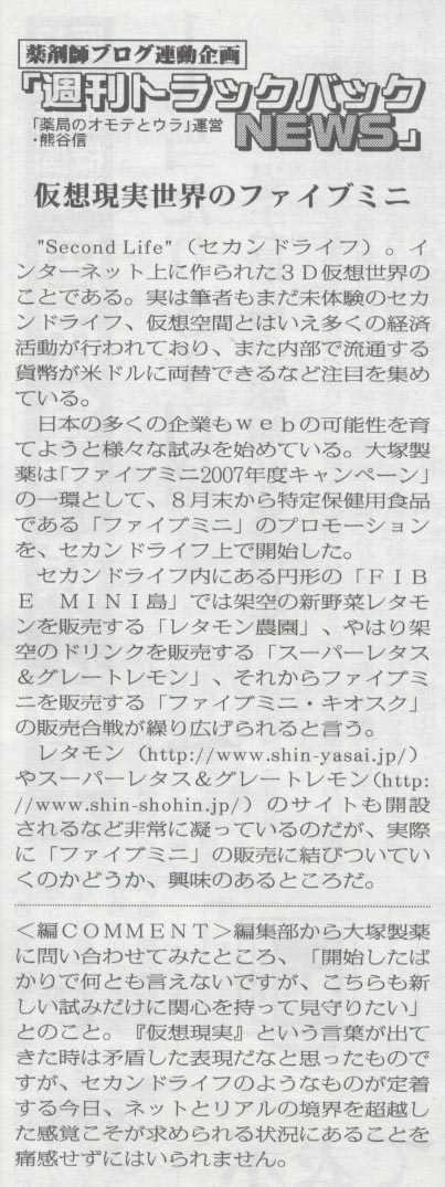 薬局新聞連載の「週刊トラックバックNEWS」第19回です。