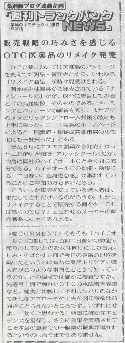 薬局新聞連載の「週刊トラックバックNEWS」第23回です。