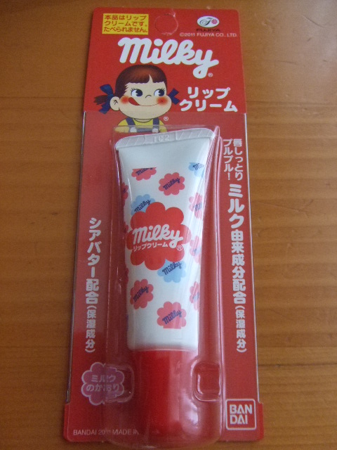ミルキーだけに「本品はリップクリームです。たべられません。」と記載がありますね。舐めたら美味しそう…という気持ちは分からないでもありません。