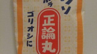 食べ物・食事処 [ネタ1]正論丸 「正論丸」中身はカプセルガムです。写真をクリックして拡大した写真をご覧ください。【こんなときに】うそ、ほら、ゴリオシを言いたいとき等思いっきり主張したいときにぜひどうぞ。(関連リンク) 2009.01.05 食べ物・食事処